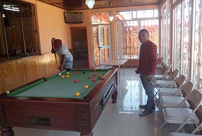 Opens through the day serving – Drinks: congnac, vodka, brandy), Tea and Coffee; Snacks: nuts, beef jerky (crichee), sawyer, pastry, plantain chips, crisps, sandwitches etc. Enjoy relaxing games: darts, snooker & pool.